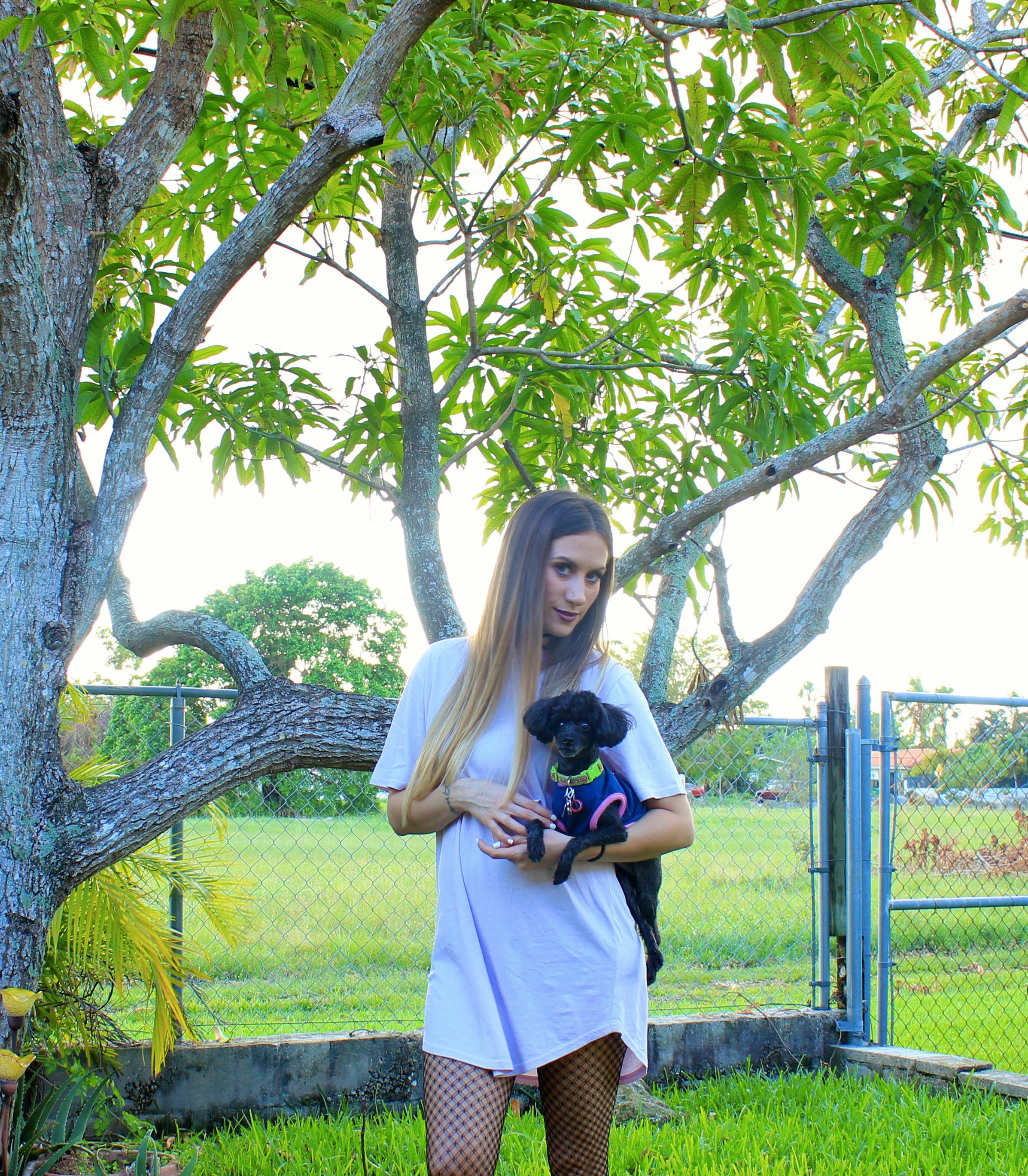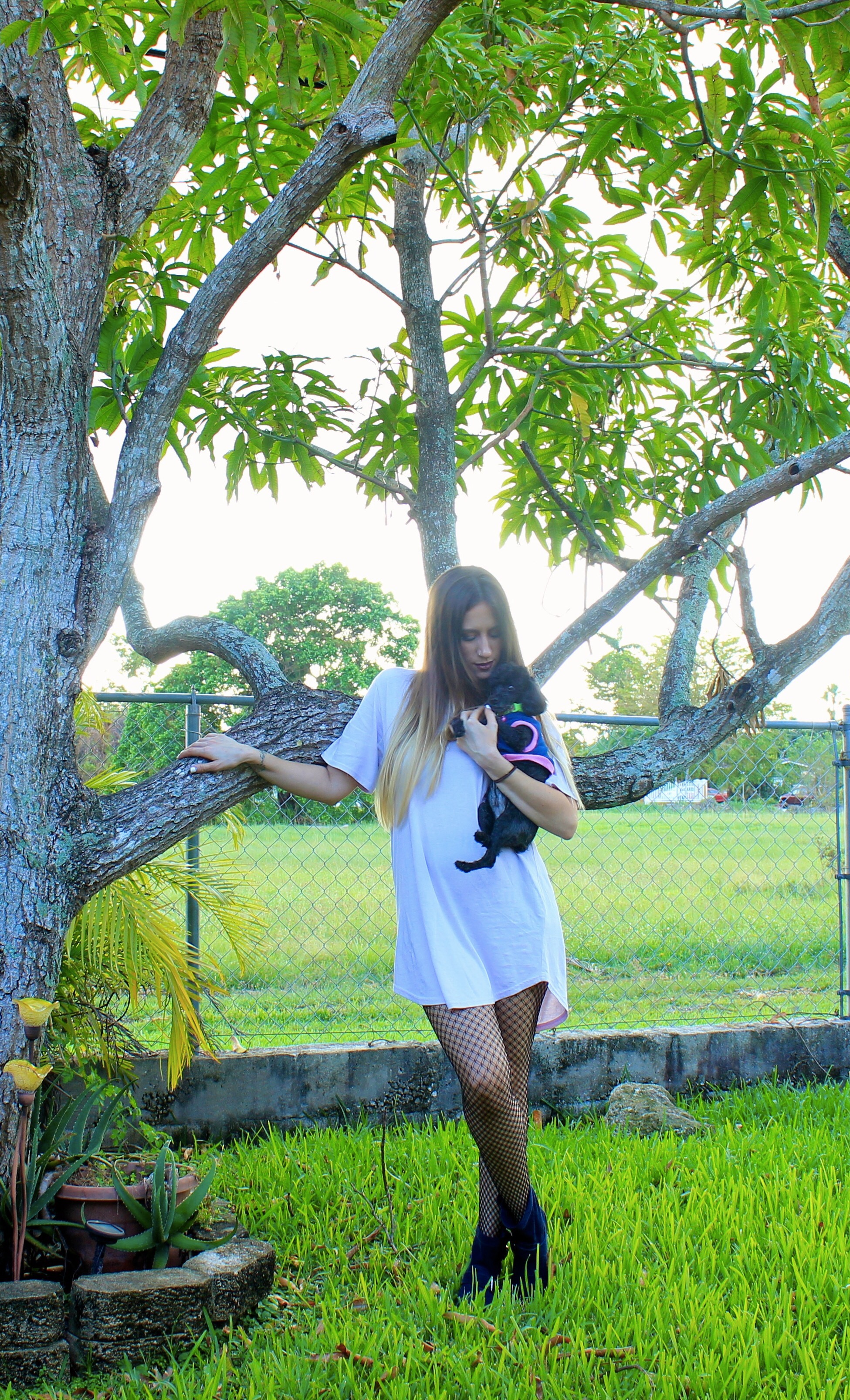 I know I have been missing in action for awhile… Life happened, but positive rewarding elements in life have happened. ( thank goodness…) I finally graduated with my Bachelors and in the mist of it all I found out I am a mommy to be! It was very exciting news for my significant other and I. It honestly could not have happened at a better time. I have been very blessed throughout my fifteen weeks of pregnancy and I am very thankful that I have not been feeling that terrible. With that being said, I will list my notes for those who are interested or concerned about my pregnancy symptoms below. Keep in mind every pregnancy is different, if you are trying to get pregnant or found out you are pregnant the symptoms I have had may or may not be the same ones you will experience. Now for this weeks look, I have come to the conclusion as I get further through my pregnancy I will be rocking men’s clothing. It is comfortable loose-fit and much more affordable than maternity clothing. In all honesty, I am not a fan of maternity clothing and I really don’t want to invest a lot of money on buying a complete new wardrobe. This men’s tee that I am wearing as a t-shirt dress was only $4! What a bargain if you ask me. I actually bought five men tees at Pacsun for $22 in total! you cannot beat that! I paired this shirt with a pair of gothic dainty crucifix earrings, a bow knot choker, geometric fishnets, and a pair of blue biker boots. That pretty much sums up my look! I look forward to styling more pregnancy outfits in my new feminine tomboy style so stay tuned… Ciao friends! 😉