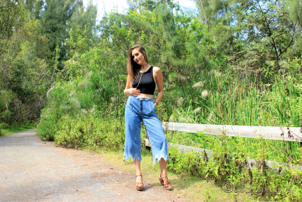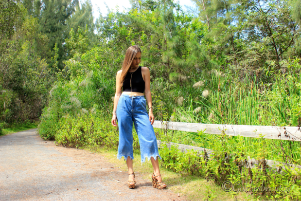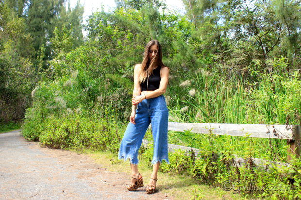 Hey there friends! I hope everyone has had a fabulous week so far. This lookbook was inspired by one of my favorite novels Huckleberry Finn written by the incredible Mark Twain. I was always fascinated with Huckleberry Finn’s character, his rebellious, free spirited, and courageous nature has always motivated me to live freely and enjoy life by finding new terrains to wander and explore. I love being outdoors and being involved in mother nature’s adventurous excursions. I shot this lookbook in a public natural reserve here in South Florida that I always enjoy delving into. As for this look, I wore a comfy black crop top coupled with a pair of loose-fit denim cropped Finn-like pants or also known as culottes. I also, accessorized this combination with a tan wrap-around choker that included rose gold triangular metal tips and a pair of rose gold swarovski crystal studs. To complete this ensemble, I wore these wild leopard print wedges I bought years ago from Steve Madden. This concludes this look, Thank goodness Friday is here, because I am ready for the weekend!