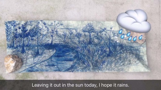 Medium: nouvel carre pastel, coffee, rain,& pond water