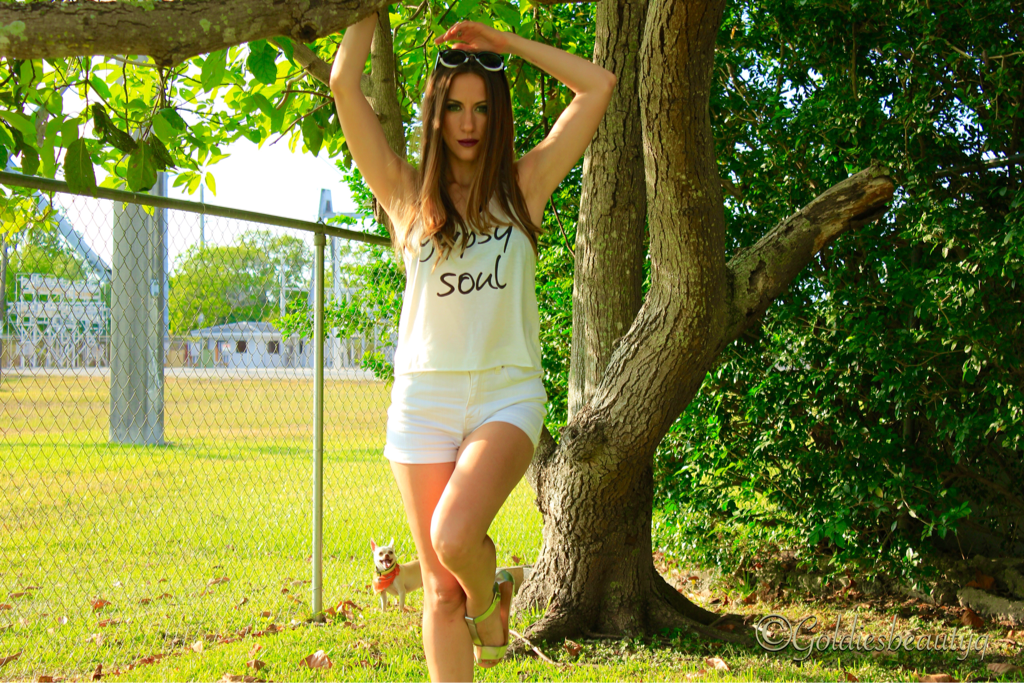 The temprature is warming up and the sun is tilting closer towards the Northern Hemisphere. In all honesty, it is warm all year round in southern Florida, especially here in Maimi, but as it gets closer to summer it gets ridiculously hot due to the humidity. With that being said, tank tops, shorts, and sandals are a common ensemble. Now for this look, I combined a neutral combination incorporated with a denim jacket and metallic t-strap sandals. Growing up within an Army lifestyle I always felt like a Gypsy moving around from place to place every two to three years. Because of my upbringing , I felt connected to this graphic tank due to its text saying “Gypsy Soul”. To accessorize this outfit, I wore these sixties inspired sunglasses for amusement and to create a groovy mood. This concludes this lookbook, I hope everyone has a beautiful week filled with positive vibes.