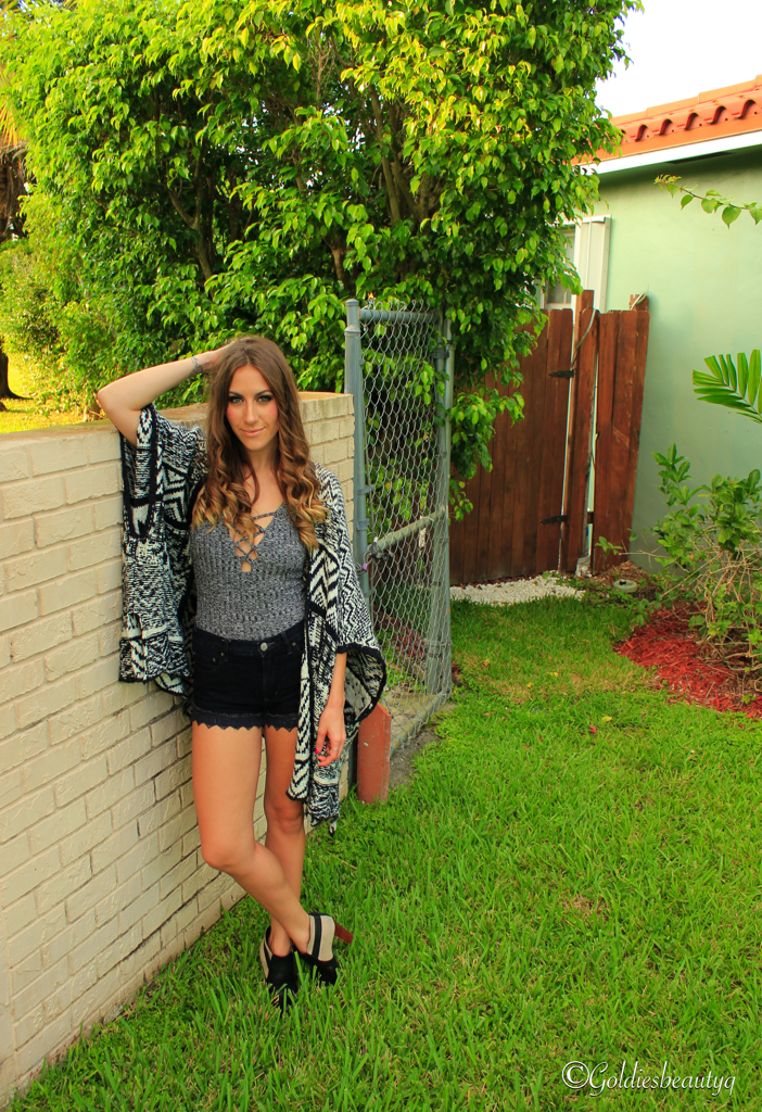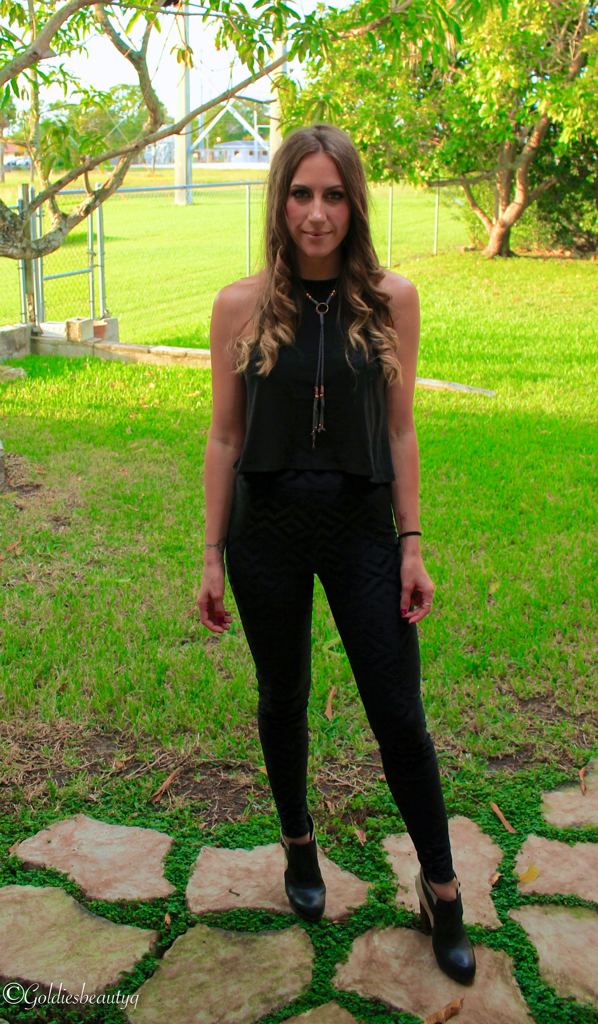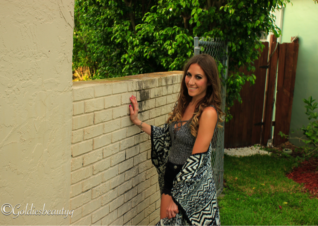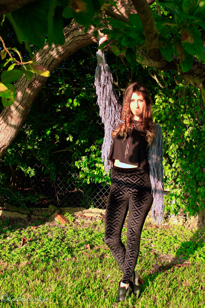 I love how fun and lightweight this frazzled cardigan is, for that reason I have been eager to incorporate an outfit with this cozy garment for one of my lookbooks. For this look, I combined a dark bohemian ensemble that I would love to see on a Charlie’s Angel/female protagonist fighting crime and kicking butt. Firstly, I combined a flowy black crop top with a pair of comfortable prismatic black velvet leggings. Secondly, I accessorized this look with a bolo styled necklace and a dainty silver ring on my index finger. Lastly, I completed this look with a pair of my favorite booties I purchased at Neiman Marcus Last Call by Sam Edelman. Sam Edelman designs beautiful shoes that will last you a lifetime and their unique designs will never be outdated. This concludes my lookbook, I wish all of you many blessings and I hope you guys have a wonderful weekend.