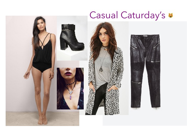 Due to the inclement weather, I have not been able to take photos outside. So, I decided to make a combination from my wish list. I paired this adorable bodysuit with a leopard print hooded-longline cardigan and these sexy faux suede biker pants from Zara. To complete this look, I combined these killer boots from Forever 21 (They would be awesome for a bad “A” Halloween costume as well) and I chose to accessorize this look with a stunning stone necklace from Pepper Mayo. I hope all of you had a great start of your weekend and I look forward to posting up a couple of look combinations once I check off everything on my wish list. 😉 Till next time! XOXOXO!