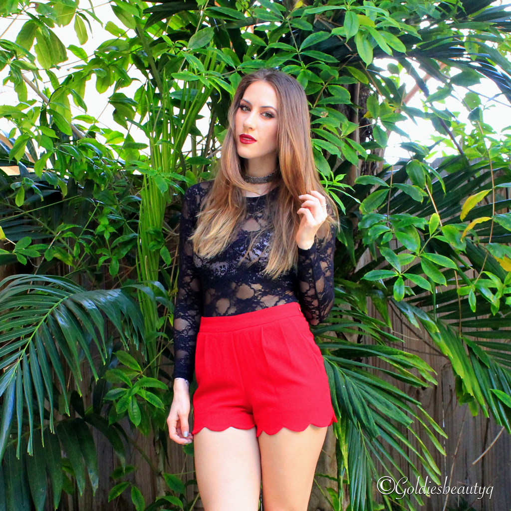 February, February, February… The month of love, romance, and friendships! Also, my birthday month! Unfortunately it passed already, it was on Ground Hog’s Day and it was definitely one of the best birthday’s I have had in awhile. I thought about sharing some picture’s here on my blog, but that would consist of exposing other’s rights of privacy, so with that being said I decided to not to do so. I did share a couple of photos on Instagram, if you would like to check them out you are welcome to do so. I plan on posting a lookbook of my birthday outfit soon, so be on the lookout for that. Anyhow, other than my birthday, Valentine’s Day is right around the corner! With that in mind, I decided to create a sexy, seductive, edgy, and “be mine” kind of look for all of you. For this look, I paired a sexy black lace bodysuit paired with a bralette underneath, coupling it with a pair of vibrant red shorts with a scallop trim. I also, accessorized this look with a silver choker that has a beautiful detailed design. To complete this look, I wore these edgy leather lace up platforms, I bought from Aldo a year or two ago. These shoes scream “be mine” ! This concludes my Valentine’s Day outfit, I hope all of you have a beautiful Valentine’s day filled with love and romance. Also, for those who do not have a significant other to spend it with, remember Valentine’s Day is not just for couples it is for sharing your love and admiration with your friends and family. 😉 Till next time lovelies !