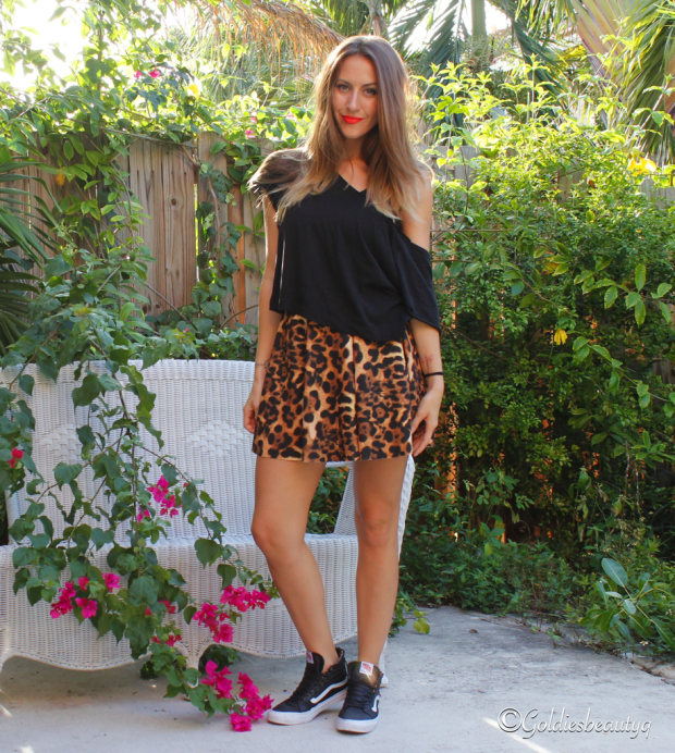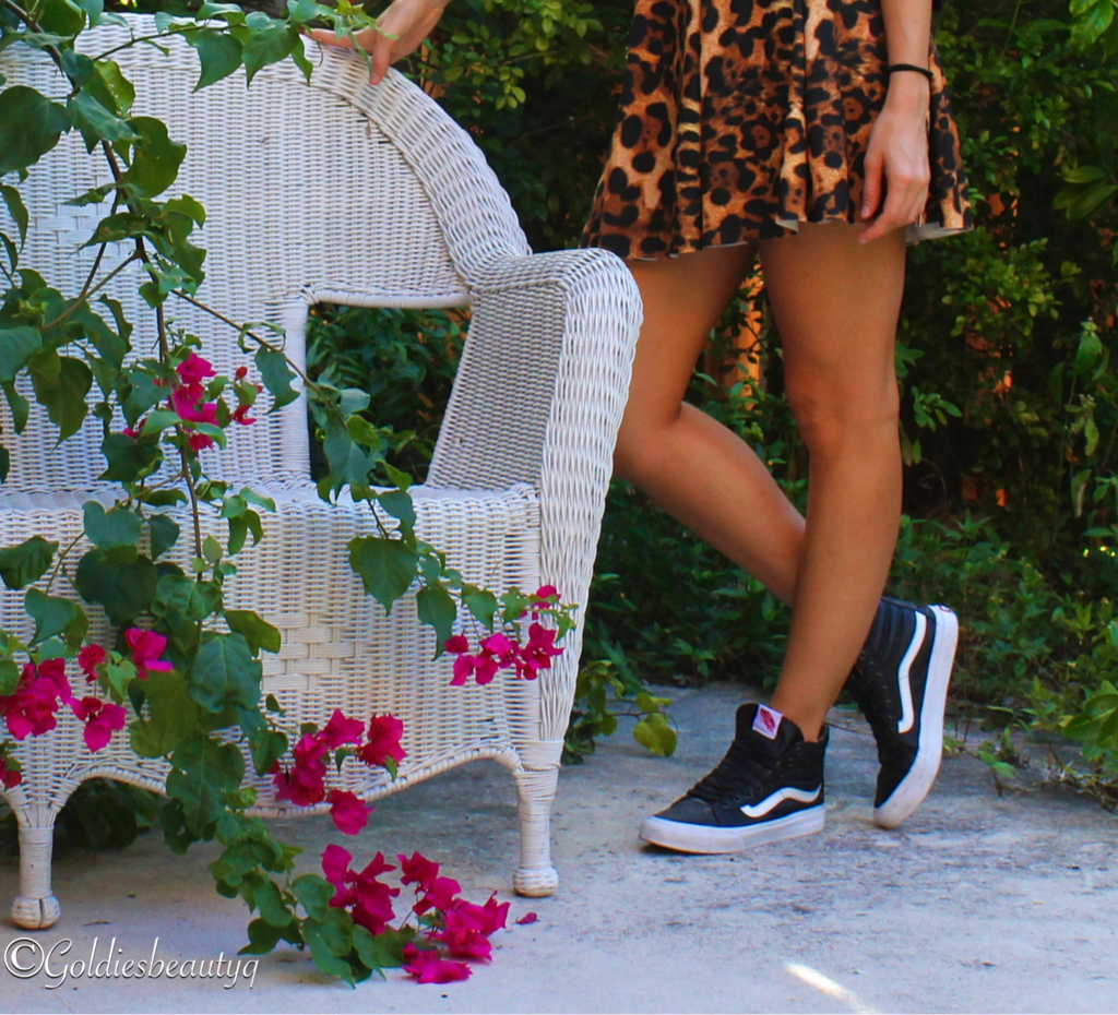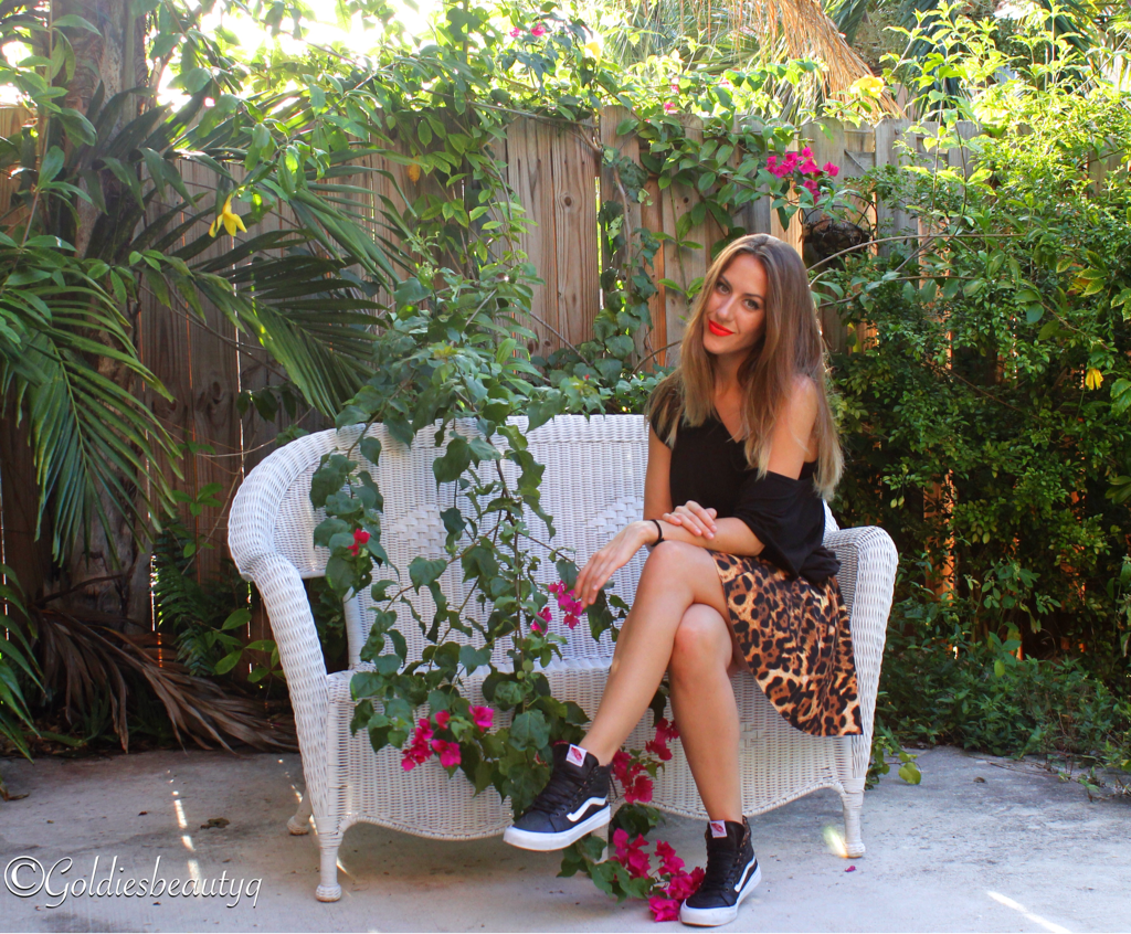 I decided to do something a little different with this post. Instead of posting a new outfit that is still for sale at retailers, I coordinated an outfit with older clothing from my closet to compliment my new pair of Vans. Although they are still full price online, 😦 I have been waiting for these bad boys to go on sale and they finally did in stores. 🙂 I love these sneakers! They go with almost anything. Now onto the outfit details, I combined a black cropped-off-the-shoulder top with a black sports bra underneath, pairing it with this adorable leopard print skater skirt. I absolutely love leopard print! (No surprise, coming from the crazy cat lady here!) I love leopard print so much that I think I am going to start a “Leopard Print Friday”. Let me know your thoughts on this, in other words every friday I will post an outfit with leopard print or something involving cats. That concludes this fun and flirty look and I hope you all have a splendid week! ❤